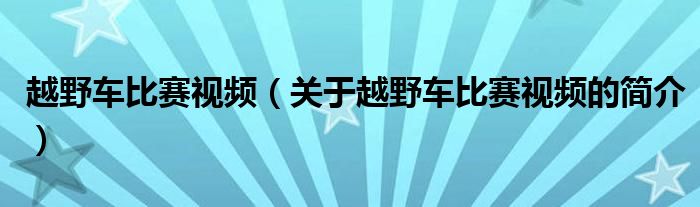 本文關于越野車比賽視頻的簡介就講解完畢,希望對大家有所幫助。