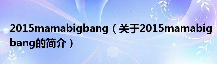 大家好,2015mamabigbang,關(guān)于2015mamabigbang的簡介很多人還不知道,現(xiàn)在讓我們一起來看看吧!