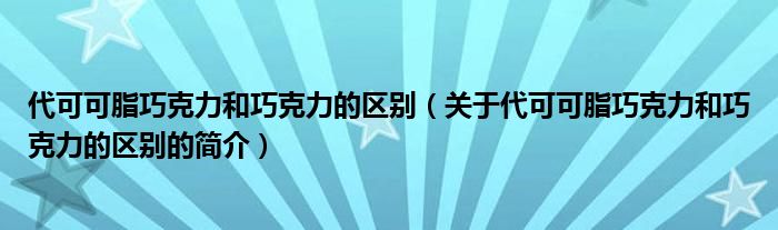 本文關于代可可脂巧克力和巧克力的區別的簡介就講解完畢,希望對大家有所幫助。