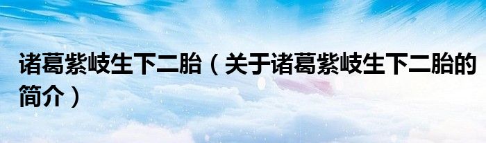 本文關于諸葛紫岐生下二胎的簡介就講解完畢,希望對大家有所幫助。