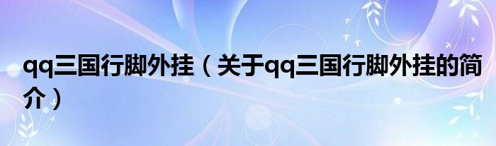 本文關(guān)于qq三國行腳外掛的簡介就講解完畢,希望對大家有所幫助。