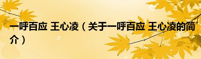 本文關于一呼百應 王心凌的簡介就講解完畢,希望對大家有所幫助。