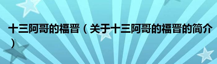 本文關于十三阿哥的福晉的簡介就講解完畢,希望對大家有所幫助。
