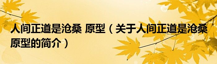 本文關(guān)于人間正道是滄桑 原型的簡介就講解完畢,希望對大家有所幫助。