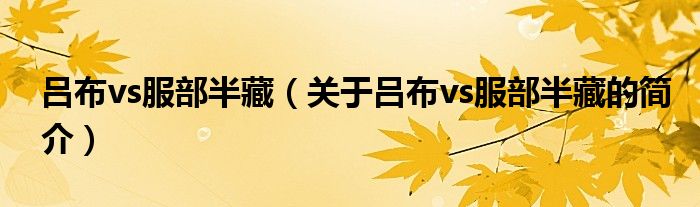 本文關于呂布vs服部半藏的簡介就講解完畢,希望對大家有所幫助。