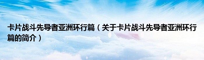 本文關于卡片戰斗先導者亞洲環行篇的簡介就講解完畢,希望對大家有所幫助。
