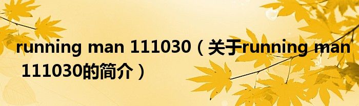 本文關(guān)于running man 111030的簡介就講解完畢,希望對大家有所幫助。