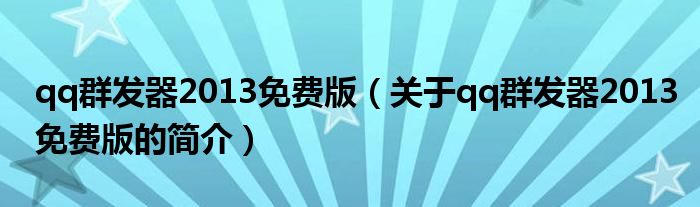 本文關于qq群發器2013免費版的簡介就講解完畢,希望對大家有所幫助。