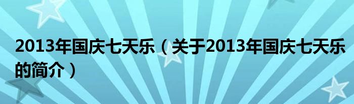 大家好,2013年國慶七天樂,關于2013年國慶七天樂的簡介很多人還不知道,現在讓我們一起來看看吧!