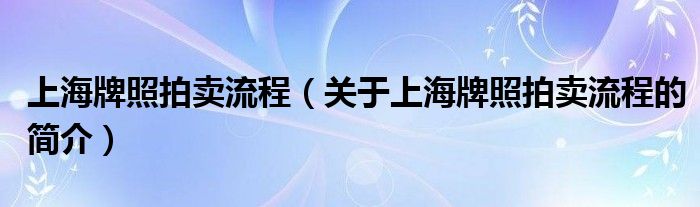 本文關(guān)于上海牌照拍賣(mài)流程的簡(jiǎn)介就講解完畢,希望對(duì)大家有所幫助。