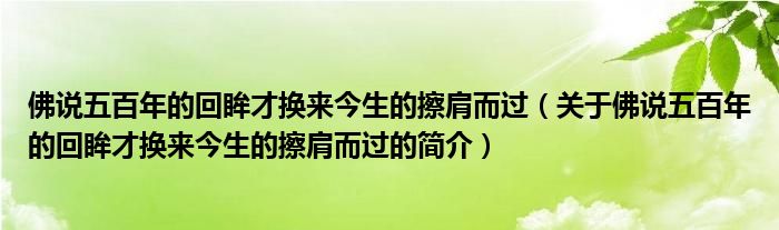 本文關(guān)于佛說五百年的回眸才換來今生的擦肩而過的簡介就講解完畢,希望對大家有所幫助。