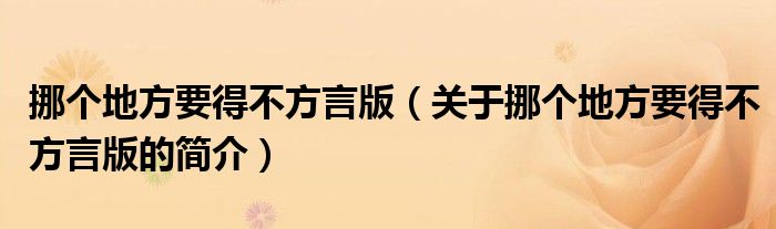 本文關于挪個地方要得不方言版的簡介就講解完畢,希望對大家有所幫助。