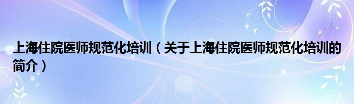 大家好,上海住院醫(yī)師規(guī)范化培訓,關(guān)于上海住院醫(yī)師規(guī)范化培訓的簡介很多人還不知道,現(xiàn)在讓我們一起來看看吧!