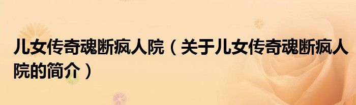 大家好,兒女傳奇魂斷瘋人院,關于兒女傳奇魂斷瘋人院的簡介很多人還不知道,現在讓我們一起來看看吧!