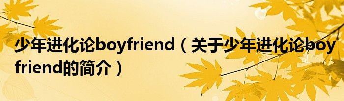 大家好,少年進化論boyfriend,關于少年進化論boyfriend的簡介很多人還不知道,現在讓我們一起來看看吧!