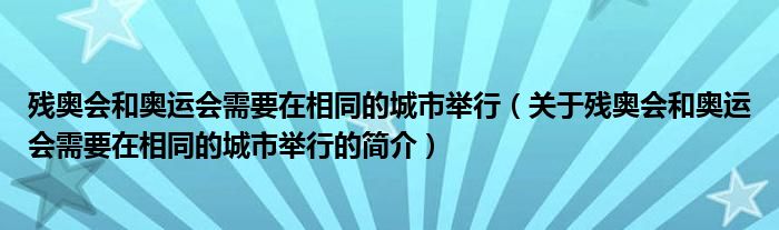 本文關(guān)于殘奧會(huì)和奧運(yùn)會(huì)需要在相同的城市舉行的簡介就講解完畢,希望對(duì)大家有所幫助。