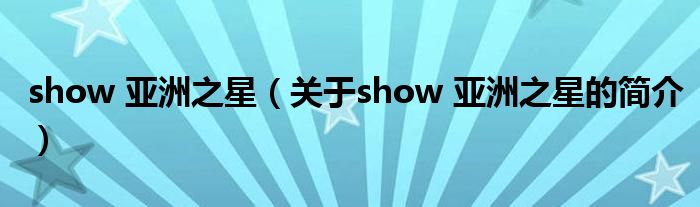 大家好,show 亞洲之星,關于show 亞洲之星的簡介很多人還不知道,現在讓我們一起來看看吧!