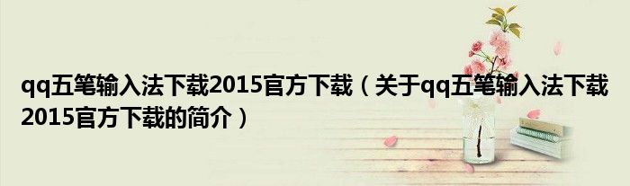 本文關(guān)于qq五筆輸入法下載2015官方下載的簡介就講解完畢,希望對大家有所幫助。