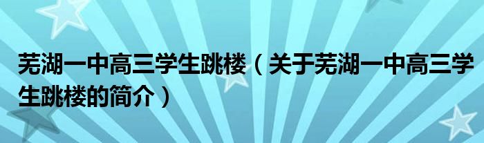 本文關(guān)于蕪湖一中高三學(xué)生跳樓的簡(jiǎn)介就講解完畢,希望對(duì)大家有所幫助。