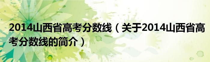 本文關于2014山西省高考分數線的簡介就講解完畢,希望對大家有所幫助。