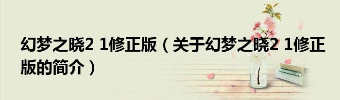大家好,幻夢之曉2 1修正版,關于幻夢之曉2 1修正版的簡介很多人還不知道,現(xiàn)在讓我們一起來看看吧!