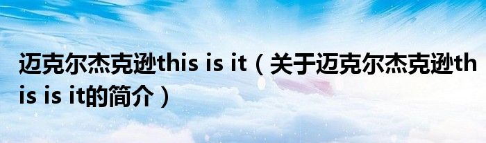 本文關于邁克爾杰克遜this is it的簡介就講解完畢,希望對大家有所幫助。