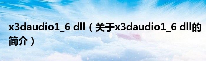 大家好,x3daudio1_6 dll,關于x3daudio1_6 dll的簡介很多人還不知道,現在讓我們一起來看看吧!