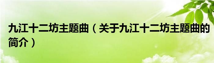 本文關于九江十二坊主題曲的簡介就講解完畢,希望對大家有所幫助。