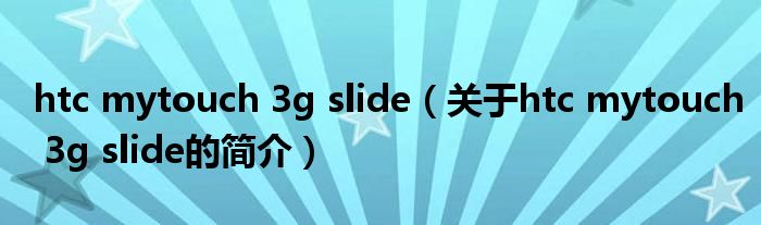 大家好,htc mytouch 3g slide,關于htc mytouch 3g slide的簡介很多人還不知道,現在讓我們一起來看看吧!