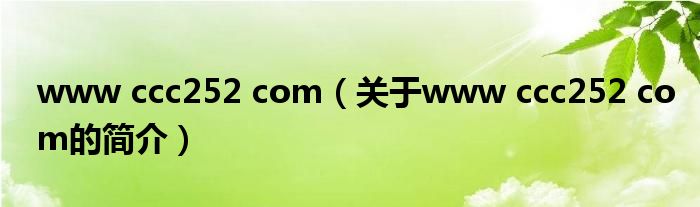 大家好,www ccc252 com,關于www ccc252 com的簡介很多人還不知道,現在讓我們一起來看看吧!