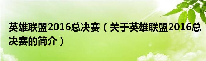 本文關(guān)于英雄聯(lián)盟2016總決賽的簡介就講解完畢,希望對大家有所幫助。