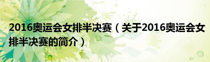 本文關于2016奧運會女排半決賽的簡介就講解完畢,希望對大家有所幫助。