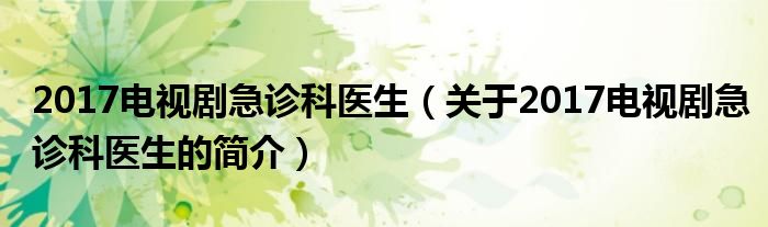 大家好,2017電視劇急診科醫生,關于2017電視劇急診科醫生的簡介很多人還不知道,現在讓我們一起來看看吧!