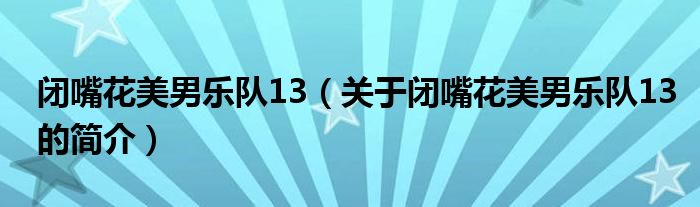 本文關于閉嘴花美男樂隊13的簡介就講解完畢,希望對大家有所幫助。