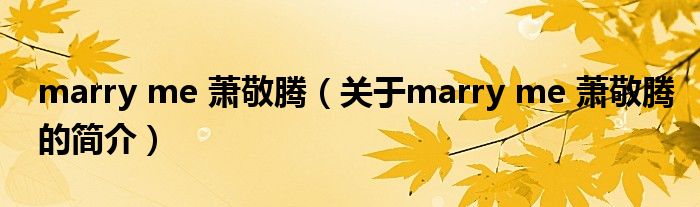 本文關于marry me 蕭敬騰的簡介就講解完畢,希望對大家有所幫助。