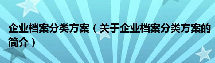 本文關(guān)于企業(yè)檔案分類方案的簡介就講解完畢,希望對大家有所幫助。
