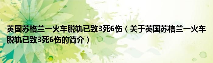 本文關(guān)于英國蘇格蘭一火車脫軌已致3死6傷的簡介就講解完畢,希望對大家有所幫助。