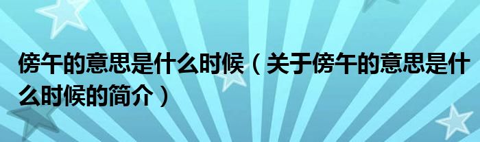 本文關(guān)于傍午的意思是什么時候的簡介就講解完畢,希望對大家有所幫助。