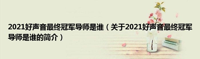 本文關于2021好聲音最終冠軍導師是誰的簡介就講解完畢,希望對大家有所幫助。