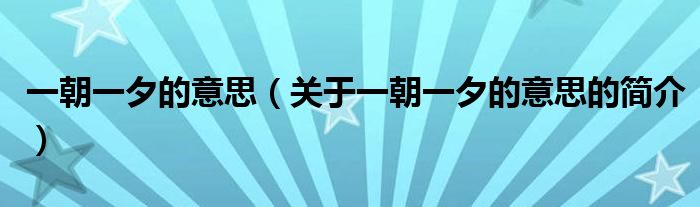 本文關于一朝一夕的意思的簡介就講解完畢,希望對大家有所幫助。