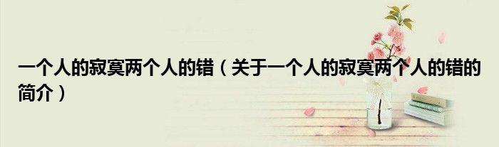 本文關于一個人的寂寞兩個人的錯的簡介就講解完畢,希望對大家有所幫助。