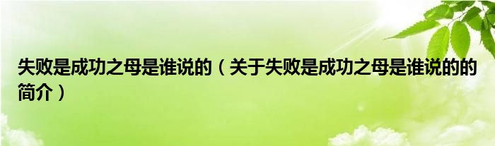 本文關(guān)于失敗是成功之母是誰說的的簡介就講解完畢,希望對大家有所幫助。