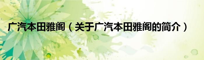 本文關(guān)于廣汽本田雅閣的簡介就講解完畢,希望對大家有所幫助。