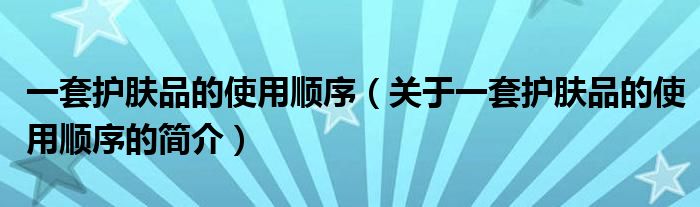 本文關(guān)于一套護膚品的使用順序的簡介就講解完畢,希望對大家有所幫助。