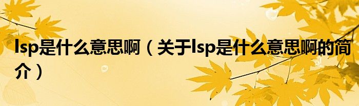 大家好,lsp是什么意思啊,關于lsp是什么意思啊的簡介很多人還不知道,現在讓我們一起來看看吧!