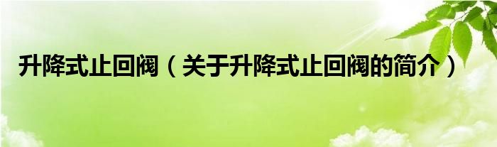 本文關(guān)于升降式止回閥的簡(jiǎn)介就講解完畢,希望對(duì)大家有所幫助。