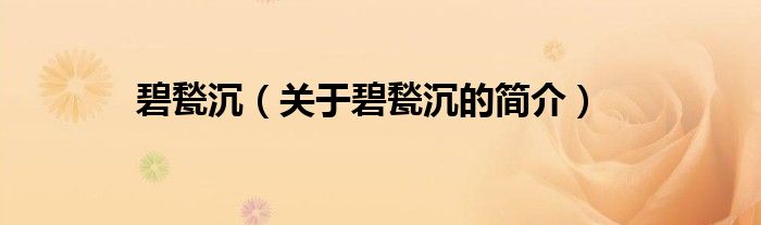 大家好,碧甃沉,關于碧甃沉的簡介很多人還不知道,現在讓我們一起來看看吧!