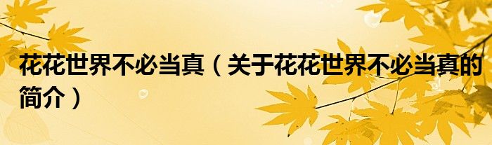 大家好,花花世界不必當真,關于花花世界不必當真的簡介很多人還不知道,現在讓我們一起來看看吧!