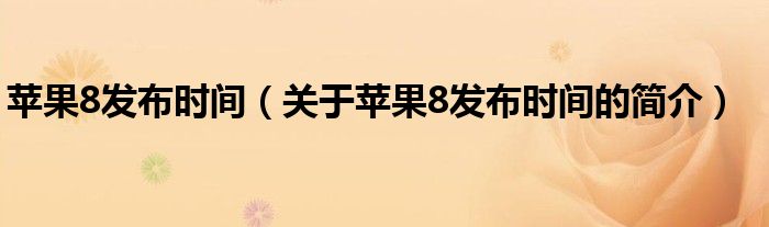 本文關(guān)于蘋果8發(fā)布時(shí)間的簡(jiǎn)介就講解完畢,希望對(duì)大家有所幫助。