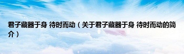 本文關(guān)于君子藏器于身 待時(shí)而動(dòng)的簡(jiǎn)介就講解完畢,希望對(duì)大家有所幫助。